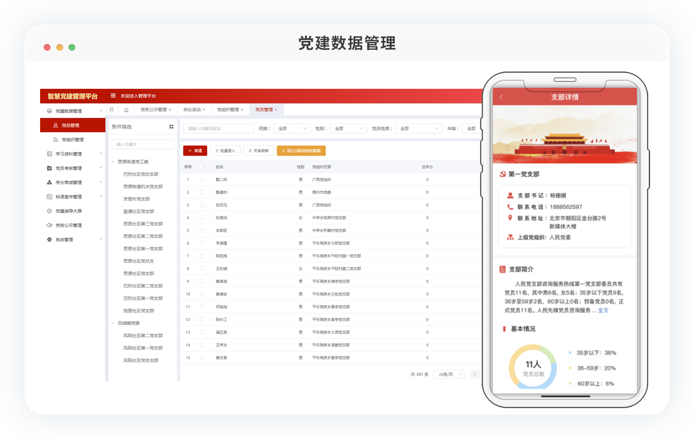 提高党员管理的精准性,对党员教育、培训、考核等工作提供数据支撑。